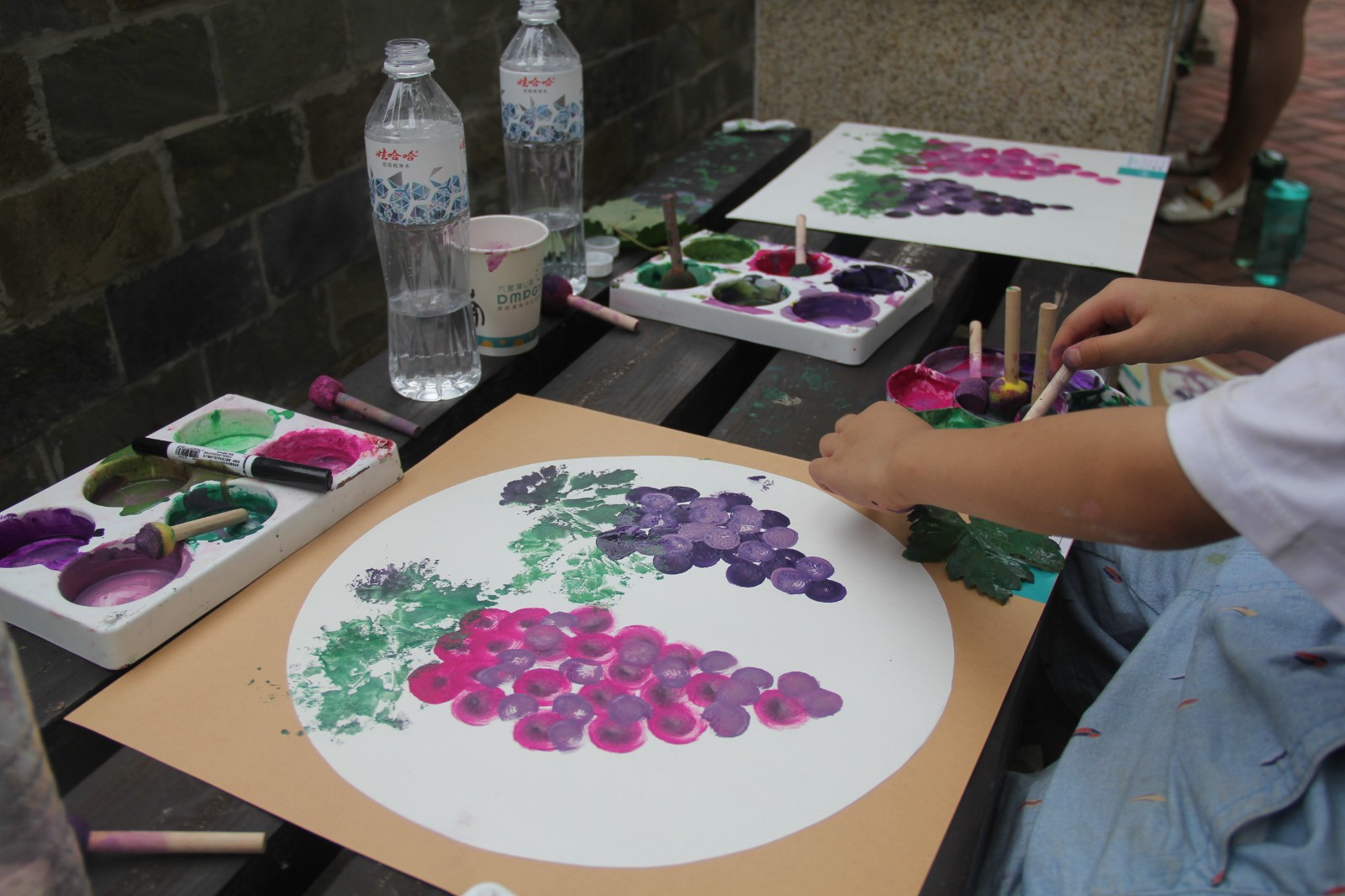 格瑞特酒莊之旅自然會讓孩子們對葡萄酒尤其是釀酒葡萄有了真切的體驗和感受。孩子們也用自己的方式把這份感受在畫紙和顏料之間盡情演繹。