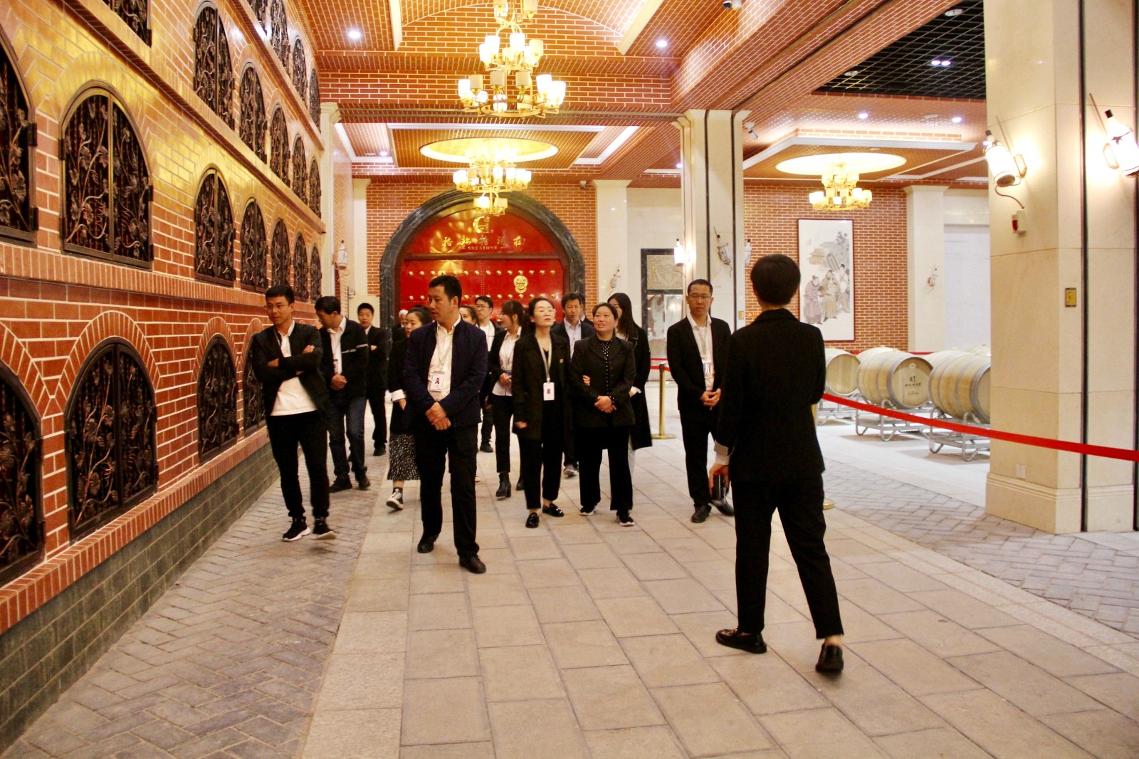 合影結(jié)束之后,專業(yè)講解員帶領(lǐng)嘉賓們來(lái)到了接待中心,接待中心整體以歐式建筑風(fēng)格為主,內(nèi)設(shè)有產(chǎn)品展示區(qū)、商務(wù)洽談室、專業(yè)紅酒品鑒區(qū)以及冷餐制作區(qū)等。