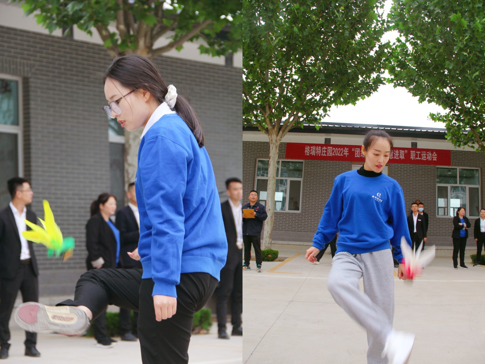 踢毽子是中國傳統體育活動,有利于活動關節,加強韌帶。個人比賽過程中職工們熱情高漲,一時間彩色的毽球上下翻飛,笑聲與歡呼此起彼伏。