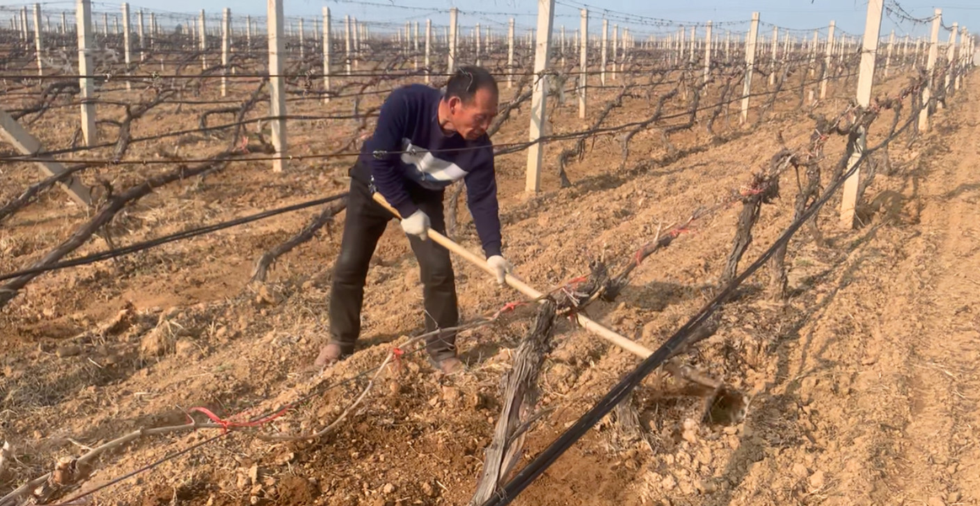 春分是破土而出的希望,也是農忙的好時節,此時的格瑞特葡萄種植基地正在進行渠灌澆水、小苗綁繩上架、樹下干草清理等工作。葡藤出土后,要及時上架綁枝,枝條要均勻擺布到架面上,合理利用空間,不能交叉或重疊,同時綁枝時必須牢固,這樣既可以使葡萄受光均勻,也可以防止受到風災影響而掉下來影響葡萄生長,綁繩上架的葡藤讓格瑞特葡園更加規范化、標準化。